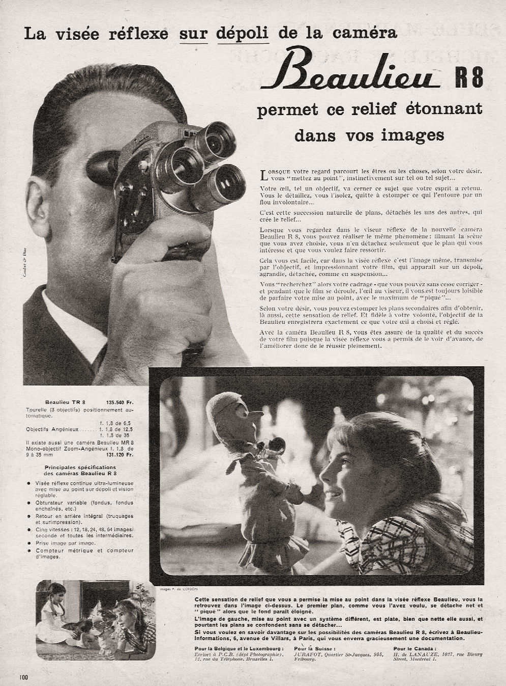 - - Objectifs : Angenieux 1:1.8 f=12,5 mm, 1:1.8 f=6,5 mm (Grand angle), 1:1.8 f=35 mm ((Téléobjectif)
