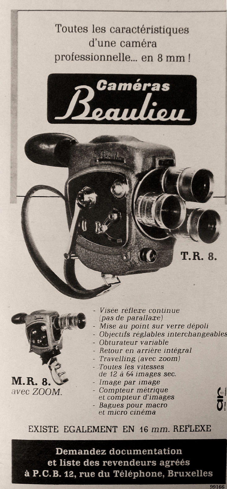 Le modèle R8 de BEAULIEU est présenté en 1959. La MR8 est la version mono-objectif, la TR8 la version à tourelle. Le "R" de R8 correspond à "Reflex". En effet BEAULIEU reprend ici, dans ses modèles 8 mm, le système de visée reflex qui avait fait le succès de la R16 quelques temps au paravent.