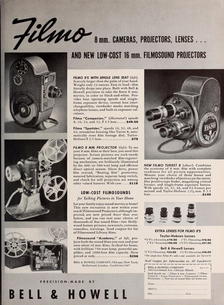 En 1939 BELL & HOWELL recentre sa gamme sur 3 versions majeures de ses cameras double-8 :