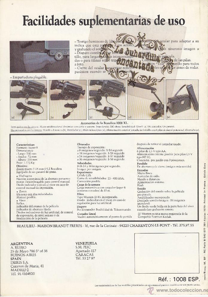 - - Système de chargement : Kodapak muet ou sonore, 15m cassette 60m sur la 1028 XL60