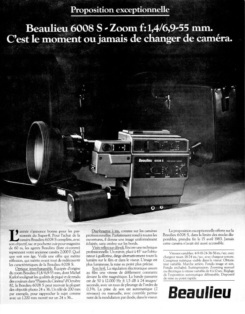 En 1979 la BEAULIEU 6008 S succède à la 5008.S. Elle se distingue de son ainée par les formes plus anguleuses de son boitier en polycarbonate armé de fibres de verre qui remplace la tôle emboutie.