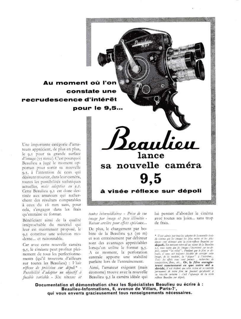 En 1960 sera proposée une version 9,5 mm, la BEAULIEU R 9.5 .