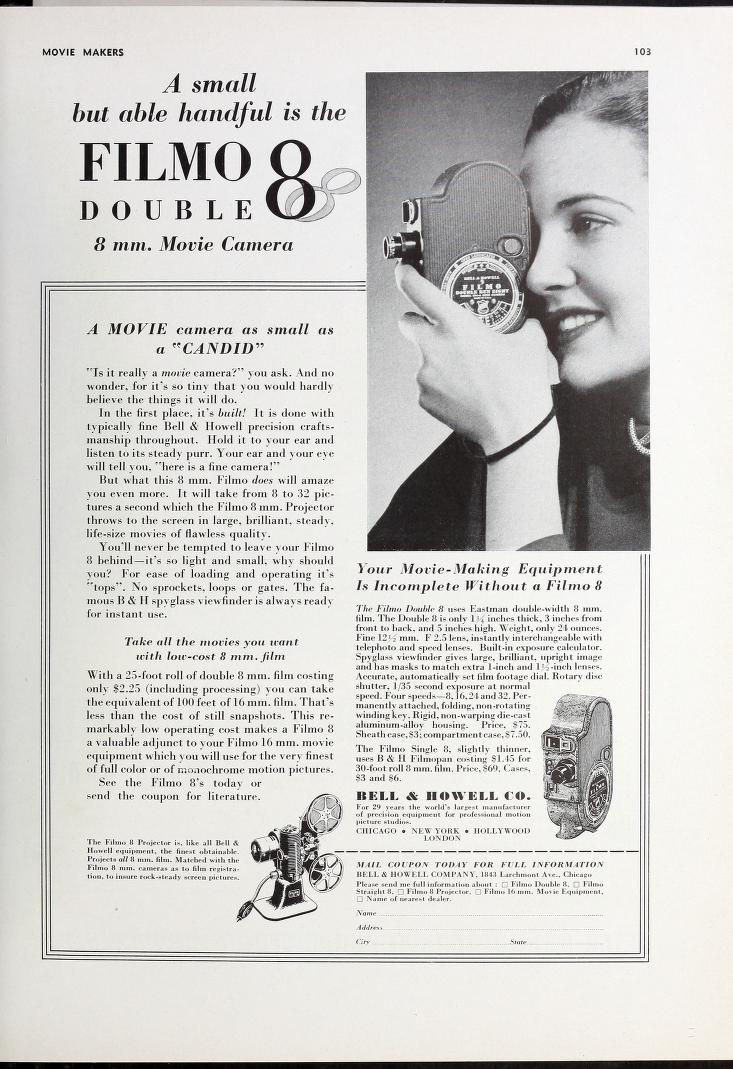 En Décembre 1935 BELL & HOWELL présente un nouveau modèle, la FILMO Double Run Eight utilisant le film double-8 d'EASTMAN-KODAK. Elle dispose d'une gamme de vitesses de 8 à 32 images par seconde. Une version "Superspeed" avec des cadences de 16 à 64 images par seconde sera annoncée dès le mois de Mai 1936.