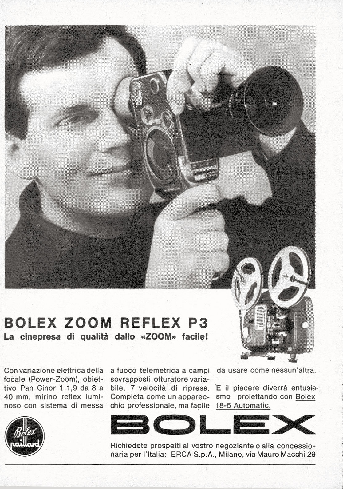 En 1963 BOLEX lance la nouvelle gamme "Zoom Reflex Automatic" de caméras compactes à poignée intégrée.et mise au point automatique.