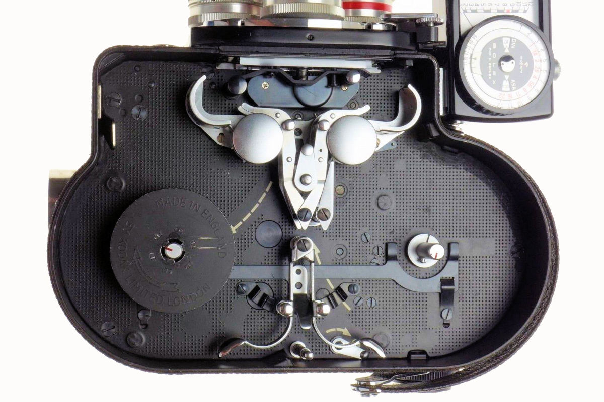 A partir de 1964, la BOLEX H-8 REX-3 disposera de la base plate. (Il s'agit de la seconde version de la H-8 reflex l'identification suivant celle des modèles reflex 16 mm).