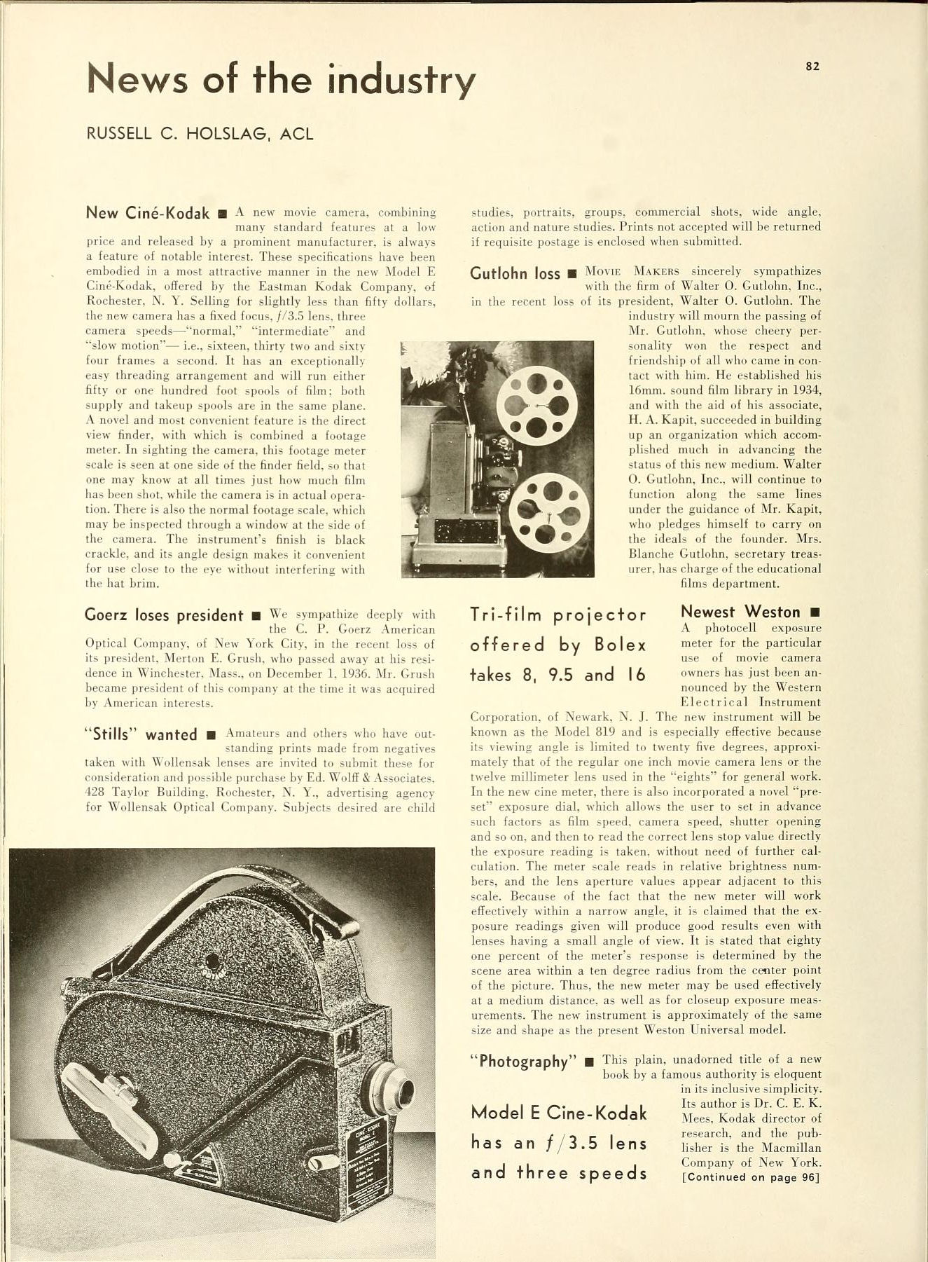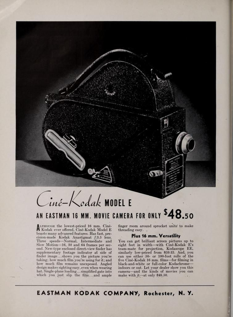 La Ciné-Kodak model E apparait dans les publicités de la marque jusqu'au début des années 40. Elle n'a pas été reprise à l'issue de la seconde guerre mondiale.