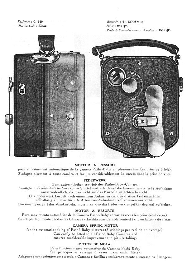 En 1926, PATHE équipe sa "Pathé-Baby" du moteur à ressort additionnel "Motrix". Le modèle de base reste inchangé et le moteur peut être acquis comme un accessoire. Le moteur référencé "Ziror" figure déjà dans le catalogue PATHE CINEMA de Décembre 1925 (extrait ci-contre).
