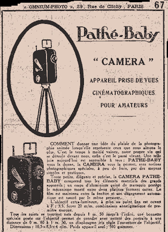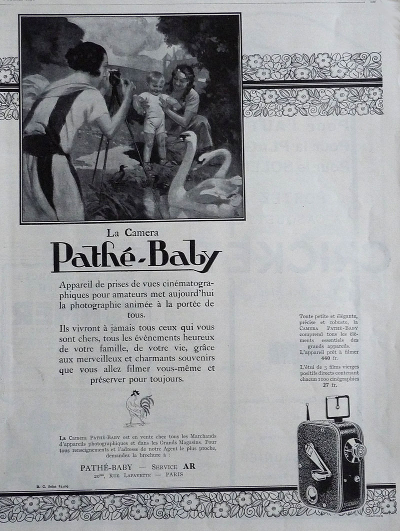 En 1922 PATHE CINEMA lance le film non-inflammable 9,5mm à perforation centrale et ouvre la voie au cinéma amateur en France et en Europe. Il propose alors les premiers projeteurs Pathé-Baby permettant de visionner des films disponibles à la vente ou à la location.