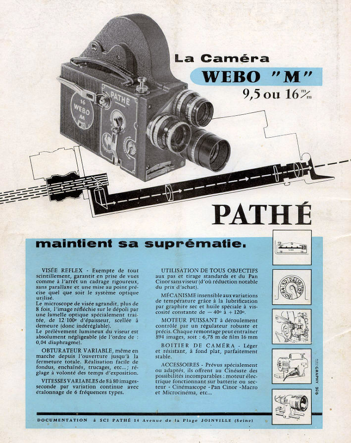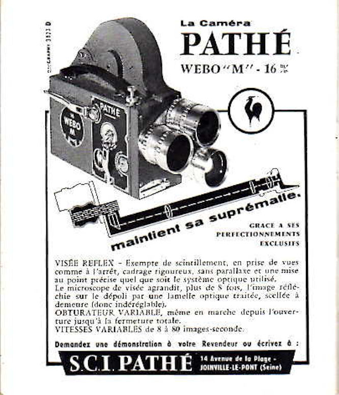 A la fin des années cinquante Pathé change le badge de marque sur ses camémaras Pathé-Webo Type M. La dénomination "SUPER" disparait tout comme sur les publicités de la marque.