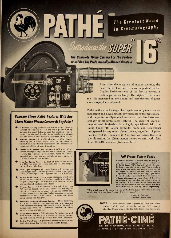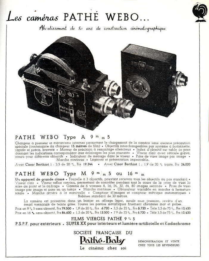 Les cameras sont présentées dans un alliage léger moulé sous pression, revêtu d'un émail vermiculé de teinte grise. Toutes les parties métalliques finement chromées mat et polies". Les objectifs standards ouvrent à 1.9 en 20mm pour le format 9,5mm et 25mm pour le format 16mm. Un objectif plus lumineux ouvrant a 1.5 est également disponible ainsi qu'un 35 et un 75mm.